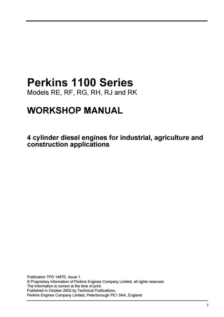 Download Complete Service Repair Manual for Perkins 1100 Series (Models RE , RF , RG , RH , RJ and RK) Engines.