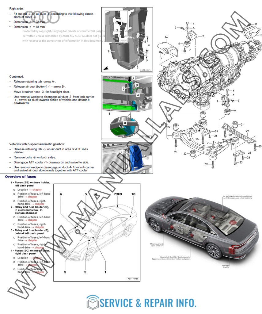 Get the highest-quality repair instructions for your 2001 AUDI A6 with this official PDF file download. Delve into key mechanical aspects such as brakes, suspension, exhaust, fuel system, transmission, and more. This comprehensive manual contains diagrams and clear instructions to ensure reliable performance.