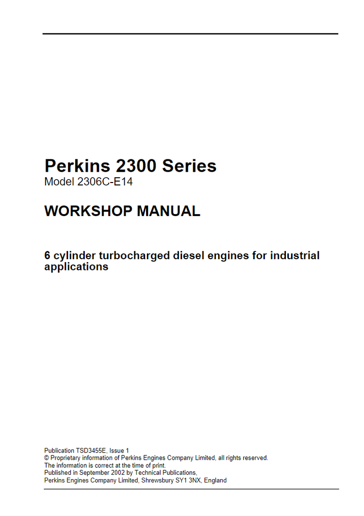 2300 Series - Perkins Models 2306A-E14, 2306C-E14 Engines Workshop Service Repair Manual - PDF File Download
