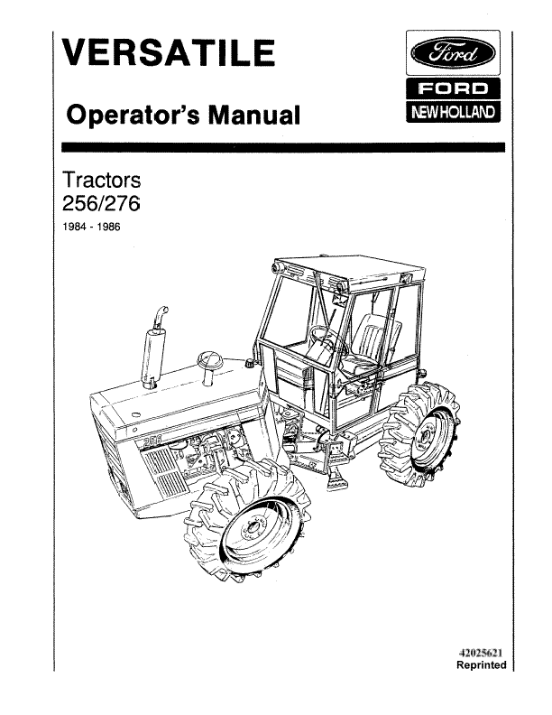 Models 256, 276 Versatile Bidirectional Tractor V97520 - New Holland Operator's Manual 42025621