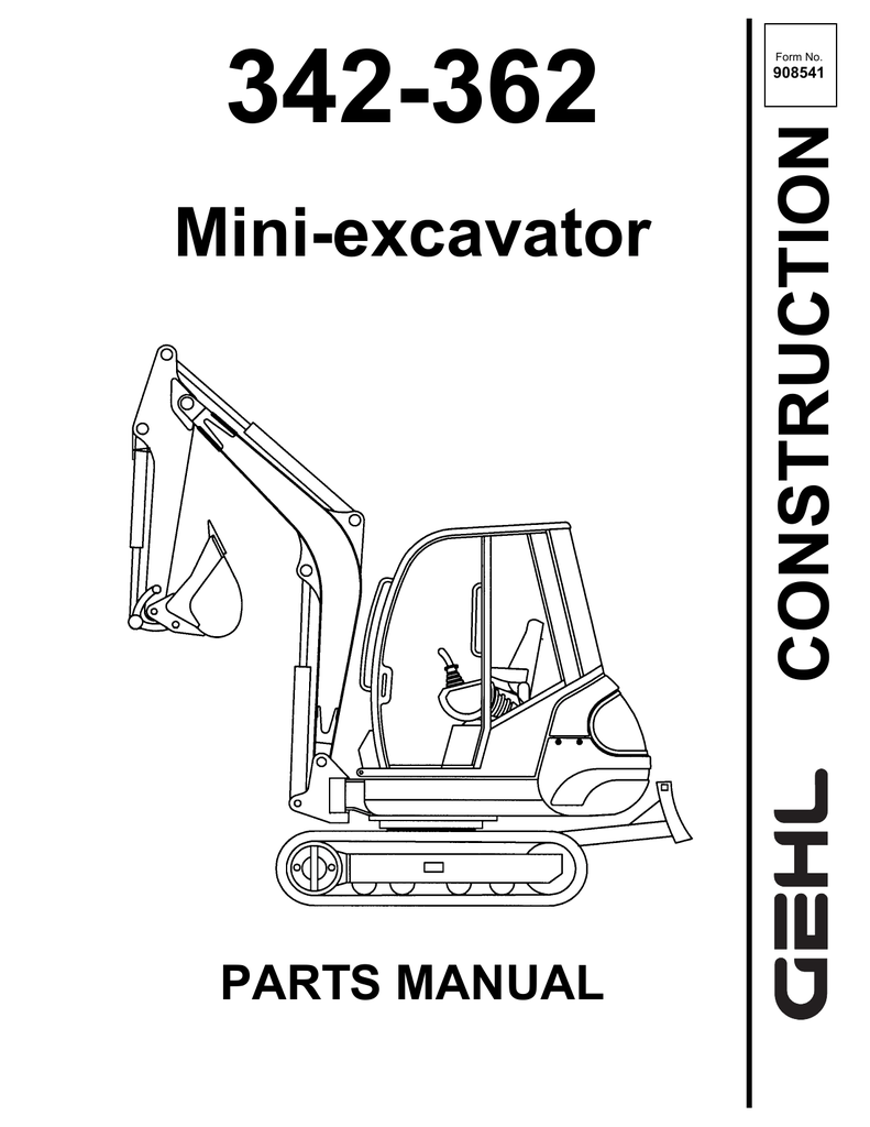 Form No. :908541, Gehl 342-362 Compact Excavator.