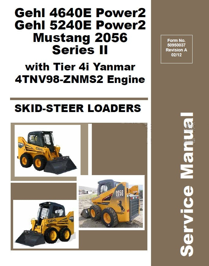 Download Service Repair Manual For Gehl 4640E Power2, 5240E Power2 & Mustang 2056 Series II Skid-Steer Loaders. Form No. 50950037 Revision A 02/12