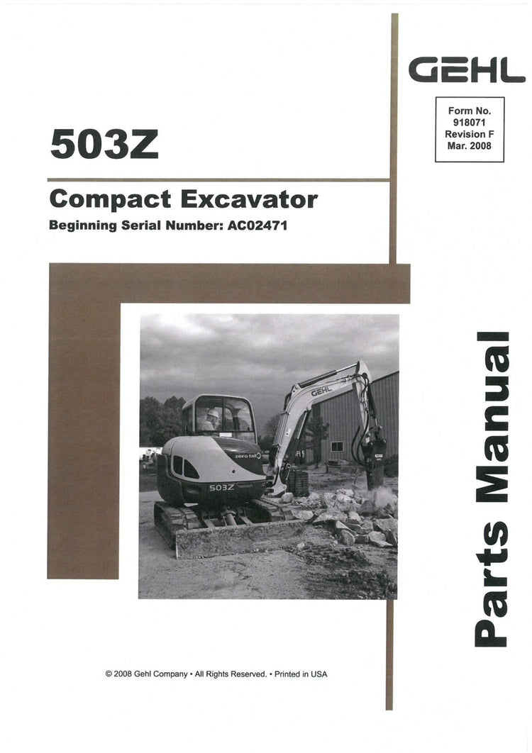 Download Complete Parts Manual for Gehl 503Z Compact Excavator.