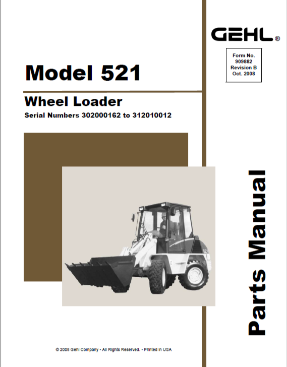 This Factory Parts Manual offers all the Parts information for Gehl 521 Wheel Steer Loader. The information on this manual covered everything you need to know when you want to Gehl 521 Wheel Steer Loader.
