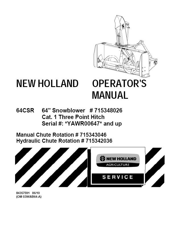 64CSR 64` Snowblower,#715348026- Cat Three Point Hitch Tractor - New Holland Operator's Manual 84357591 Download PDF - Manual labs