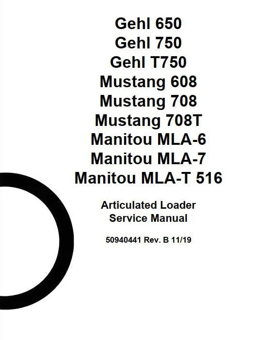 Download Service Repair Manual For Gehl 650, 750, T750 / Mustang 608, 708, 708T / Manitou MLA-6, MLA-7, MLA-T 516 Articulated Loader. Form No. 50940441 Rev. B 11/19