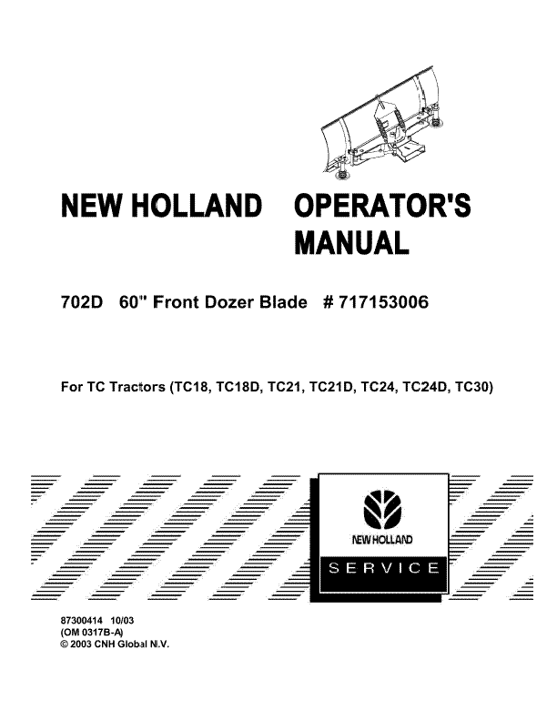 702D 60` Front Dozer Blade for TC tractors - New Holland Operator's Manual 87300414 Download PDF - Manual labs