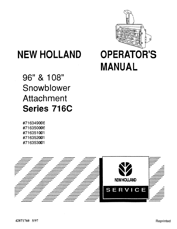 716C Snowblower 96` 108` Attachment - New Holland Operator's Manual 42871760 Download PDF - Manual labs