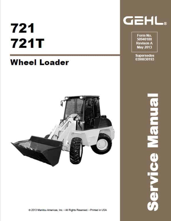 Download Service Repair Manual For Gehl 721, 721T Wheel Loader. Form No. 50940188 Revision A May 2013 - Supersedes 0390030193