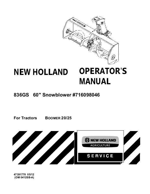 836GS 60 Inch Snowblower - 716098046 - For Tractors Boomer 20-25 - New Holland Operator's Manual 47391778 Download PDF - Manual labs