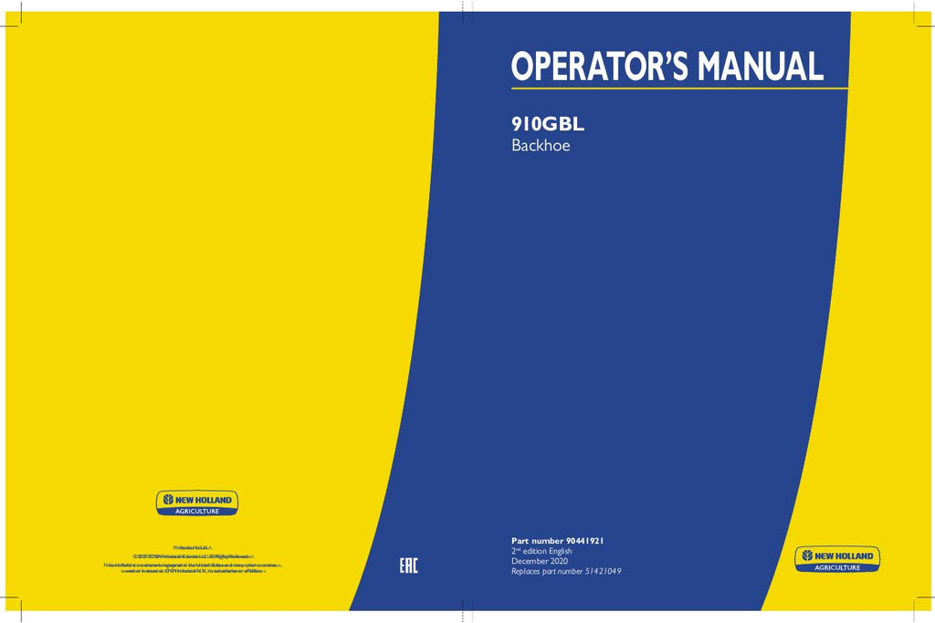 910GBL Backhoe - New Holland Operator's Manual 51421049, 90441921 Download PDF - Manual labs