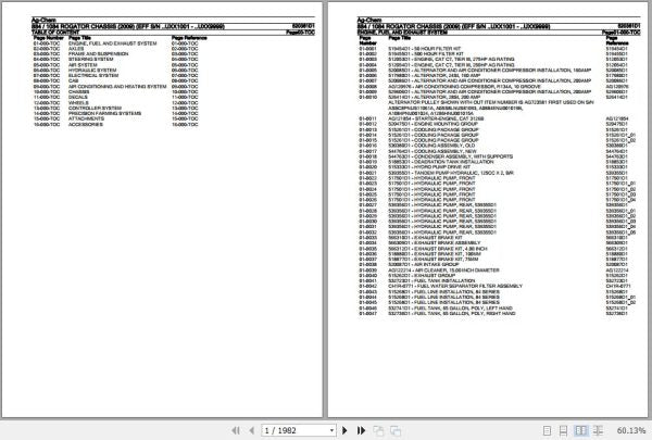 ENHANCE YOUR MAINTENANCE AND REPAIR CAPABILITIES WITH THE AG-CHEM ROGATOR CHASSIS 884 - 1084 SPARE PARTS CATALOGUE MANUAL (520361D1). THIS COMPREHENSIVE PDF FILE SERVES AS AN ESSENTIAL RESOURCE FOR IDENTIFYING AND SOURCING THE RIGHT SPARE PARTS FOR YOUR AG-CHEM EQUIPMENT, ENSURING OPTIMAL PERFORMANCE AND LONGEVITY. WITH DETAILED DIAGRAMS AND PART NUMBERS, YOU CAN EASILY NAVIGATE THROUGH THE COMPONENTS, SAVING TIME AND REDUCING DOWNTIME. INVEST IN THIS MANUAL TODAY TO KEEP YOUR MACHINERY RUNNING SMOOTHLY AND EFFICIENTLY.