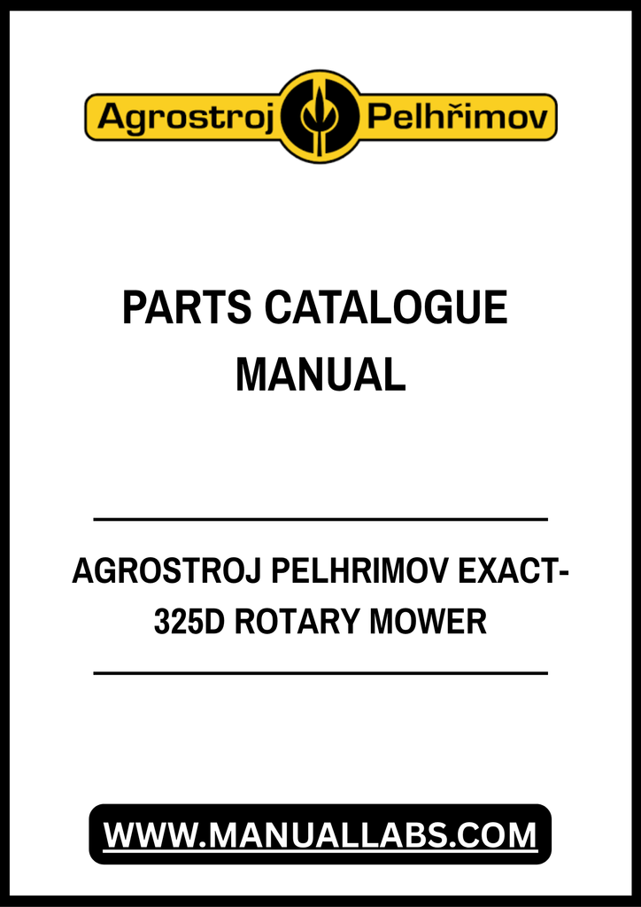 1. Discover the AGROSTROJ PELHRIMOV EXACT-325D Rotary Mower Parts Catalogue Manual, a comprehensive PDF resource designed for efficient maintenance and repair of your rotary mower. This manual provides detailed diagrams and part numbers, ensuring you can easily identify and order the necessary components to keep your equipment running smoothly.