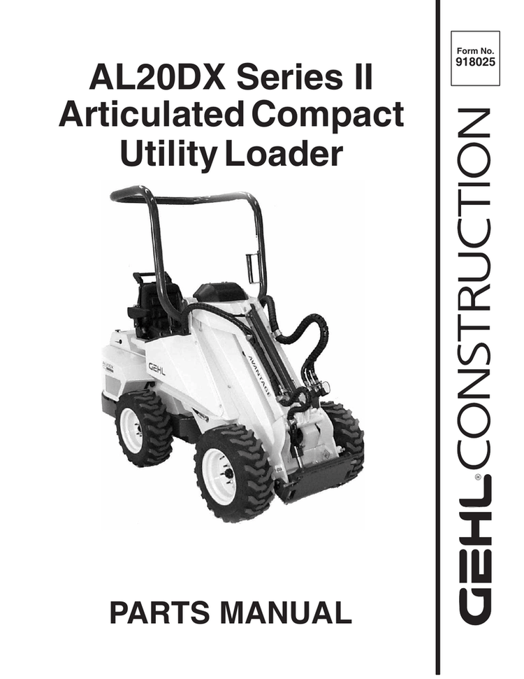 This Factory Parts Manual offers all the Parts information for GEHL AL20DX Series II Articulated Compact Utility Loader. The information on this manual covered everything you need to know when you want to GEHL AL20DX Series II Articulated Compact Utility Loader.