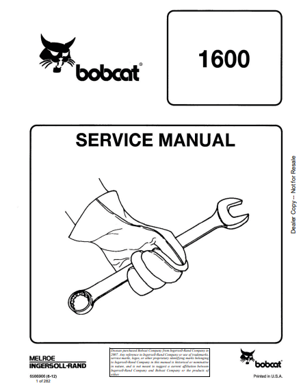 2. Download the BOBCAT 1600 Service Manual (6566906) as a PDF. Ensure your machinery runs smoothly with comprehensive service and repair guidelines.