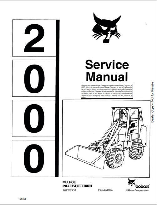 1. Access the BOBCAT 2000 Service Manual (6566180) in PDF format. Get detailed maintenance and repair information to keep your equipment running smoothly.