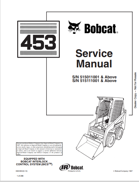 1. Access the BOBCAT 453 Service Manual (6900363) in PDF format. Get detailed maintenance and repair information for optimal performance of your equipment.
