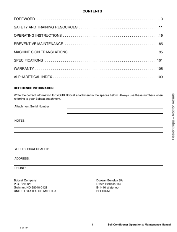 DOWNLOAD COMPLETE OPERATION & MAINTENANCE MANUAL FOR BOBCAT 48SCM SOIL CONDITIONER (6902008ENUS) PDF DOWNLOAD