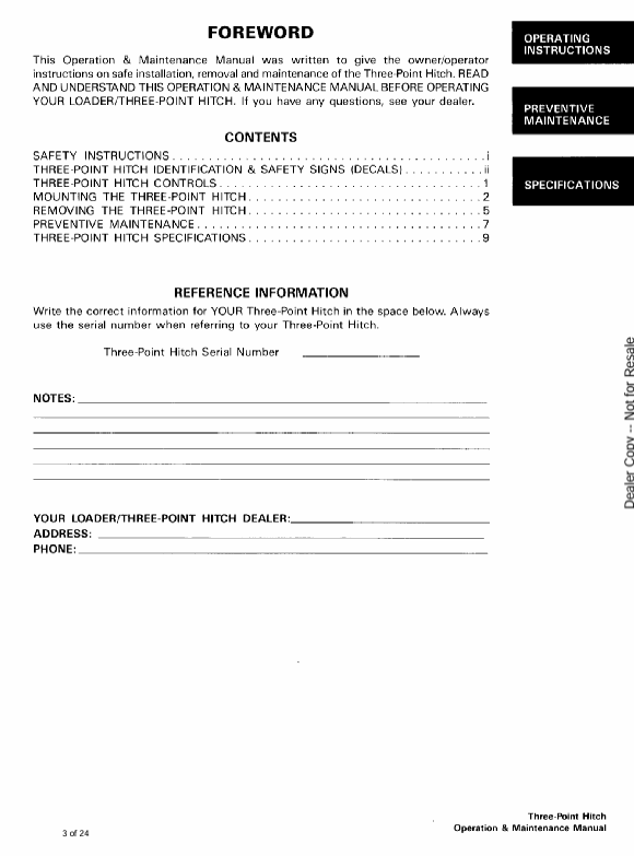 DOWNLOAD COMPLETE OPERATION & MAINTENANCE MANUAL FOR THREE-POINT HITCH (6720344) PDF DOWNLOAD