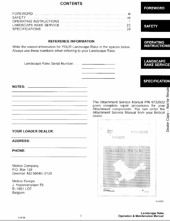 1. Enhance your landscaping projects with the BOBCAT Landscape Rake (6722755) Operation and Maintenance Manual PDF. This comprehensive guide is designed to help you maximize the performance of your landscape rake, ensuring you achieve professional results every time. With detailed instructions and maintenance tips, you can keep your equipment in top condition for years to come.
