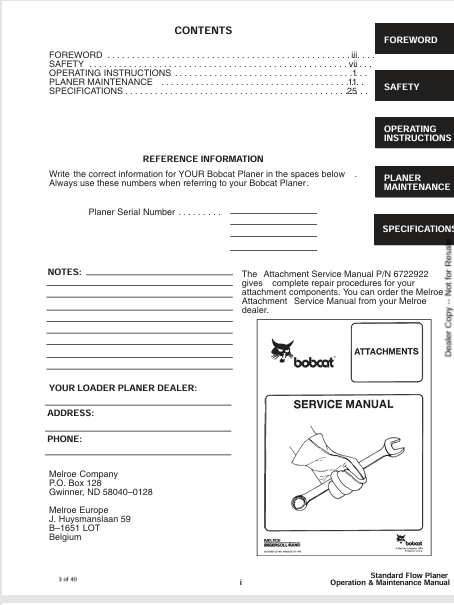 3. Whether you're a seasoned professional or a new operator, this PDF manual is an invaluable resource for maintaining your BOBCAT equipment. Equip yourself with the knowledge to keep your planer running smoothly and efficiently—download your copy today and take the first step towards optimal performance!