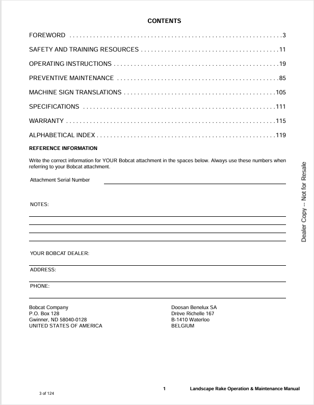 2. Inside, you'll find detailed instructions on operation, maintenance, and troubleshooting, tailored specifically for the Bobcat Landscape Rake. Whether you're a seasoned professional or a DIY enthusiast, this manual provides the insights you need to keep your rake in top condition, enhancing your landscaping efficiency and effectiveness.