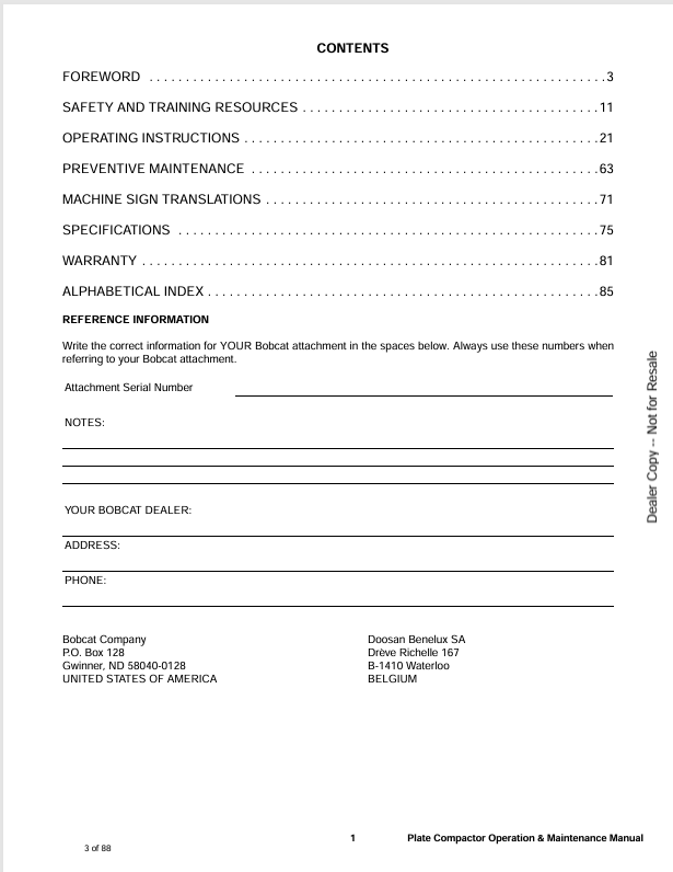 1. Enhance your equipment's performance with the BOBCAT PC30, PC60, PC62 Plate Compactor Operation & Maintenance Manual (6900777). This comprehensive PDF file is designed to provide you with essential information for optimal operation and maintenance of your plate compactor, ensuring longevity and efficiency in your projects.