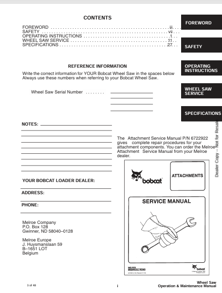 3. Don't leave your equipment's performance to chance. Invest in the BOBCAT Wheel Saw Operation and Maintenance Manual today and empower yourself with the knowledge to keep your machinery running smoothly and efficiently. Download your copy now and take the first step towards enhanced operational success.