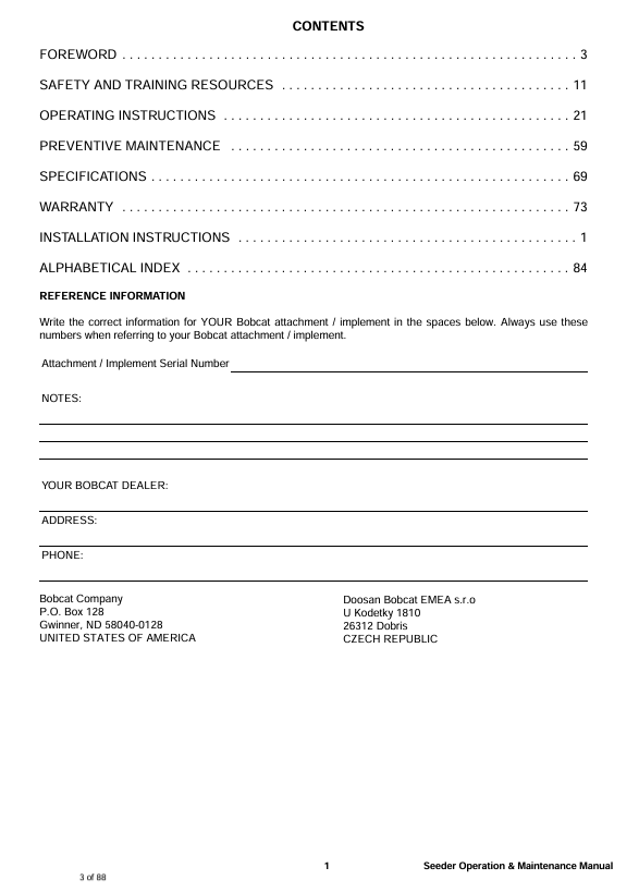 2. Inside, you'll find detailed instructions on operation, maintenance schedules, and troubleshooting tips, all designed to help you maximize the efficiency of your BOBCAT SEEDER. Whether you're a seasoned professional or a DIY enthusiast, this manual is an invaluable resource for achieving the best results in your seeding tasks.