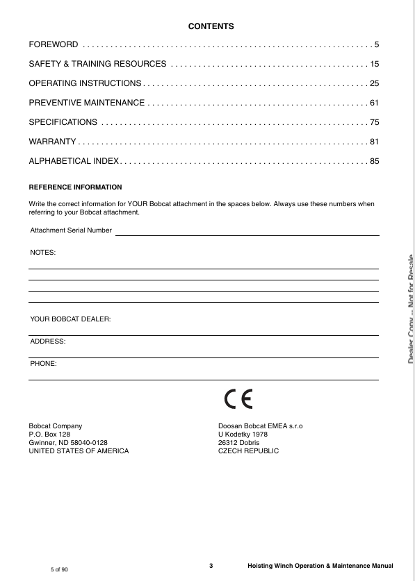 BOBCAT HOISTING WINCH (6989511ENGB) OPERATION & MAINTENANCE MANUAL PDF DOWNLOAD
