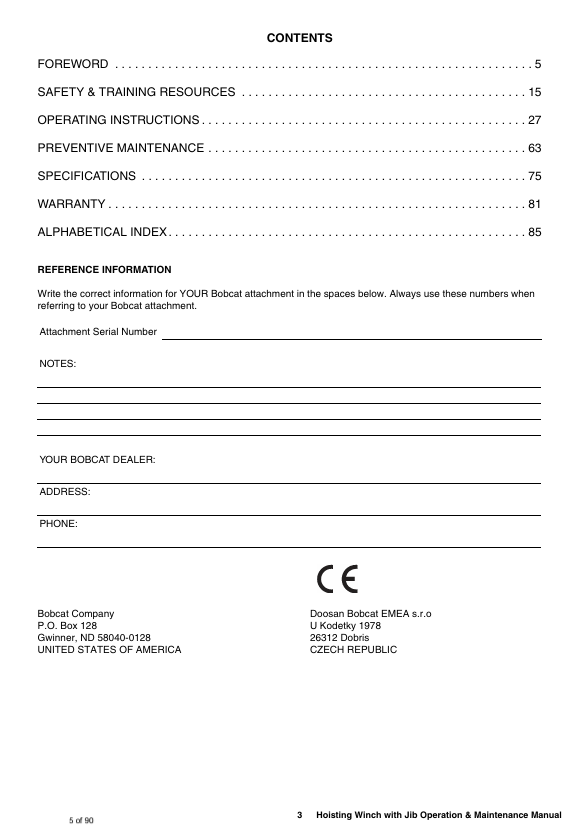 BOBCAT HOISTING WINCH WITH JIB (6989512ENGB) OPERATION AND MAINTENANCE MANUAL PDF FILE
