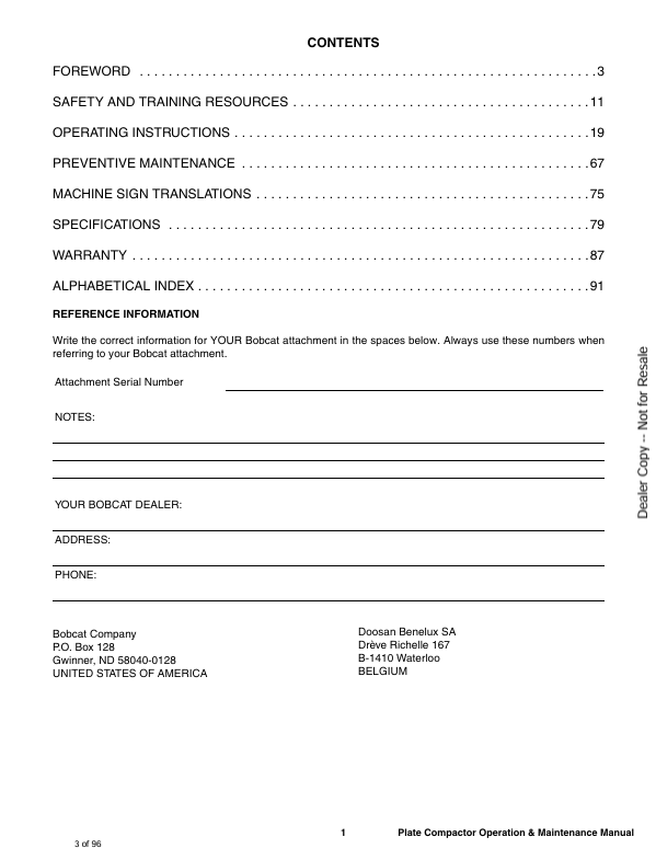2. Inside this manual, you will find step-by-step procedures for operation, maintenance, and troubleshooting, tailored specifically for your BOBCAT models. With clear illustrations and expert tips, you can easily navigate through essential tasks, ensuring your compactor remains in top condition and minimizes downtime.