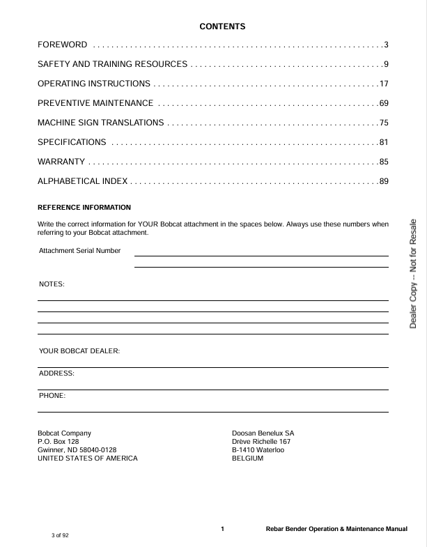 1. Enhance your operational efficiency with the BOBCAT REBER BENDER (6990430ENUS) Operation & Maintenance Manual. This comprehensive PDF download provides essential guidance for the effective use and upkeep of your equipment, ensuring you get the most out of your investment.