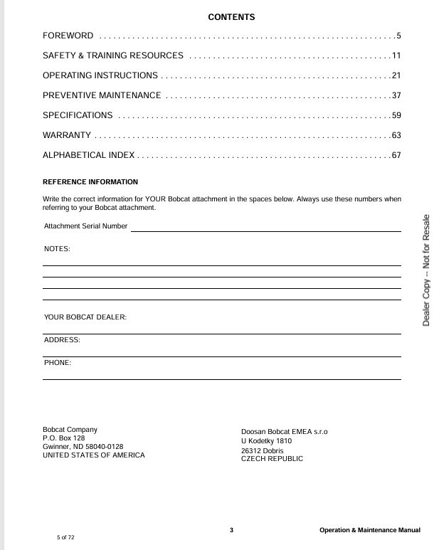 1. Discover the essential BOBCAT Side Shift Carriage 3, 5T (7328997ENUS) Operation and Maintenance Manual, now available in a convenient PDF format. This comprehensive guide is designed to enhance your understanding of the side shift carriage, ensuring optimal performance and longevity of your equipment.