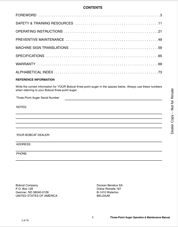 DOWNLOAD COMPLETE OPERATION AND MAINTENANCE MANUAL FOR BOBCAT THREE-POINT AUGER (7383809) PDF DOWNLOAD