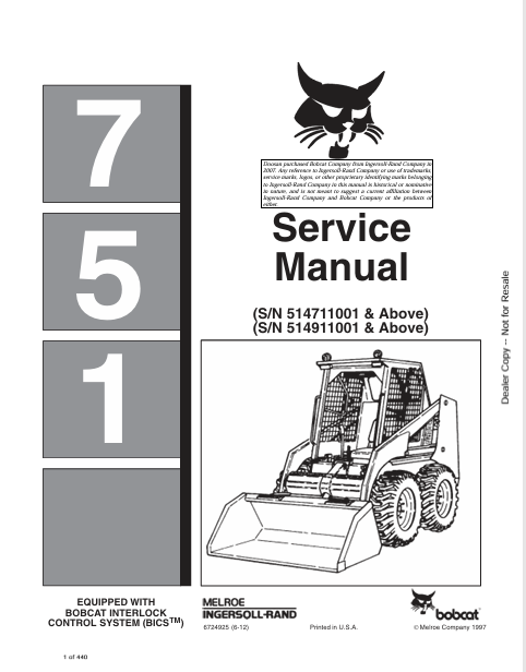 5. Explore the BOBCAT 751 Service Manual (6724925) in PDF. Equip yourself with vital information for effective maintenance and repair of your equipment.