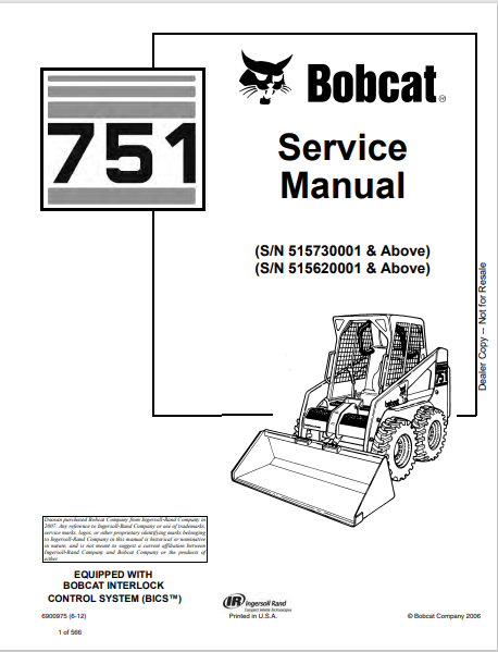 1. Access the BOBCAT 751 Service Manual (6900975) in PDF format. Get detailed maintenance and repair information to keep your equipment running smoothly.