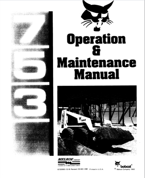 DOWNLOAD COMPLETE OPERATION & MAINTENANCE MANUAL FOR BOBCAT 753 | (PDF FILE)
