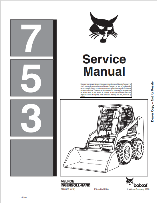 4. Obtain the BOBCAT 753 Service Manual (6720326) in PDF format. Enhance your equipment's longevity with detailed service and maintenance instructions.