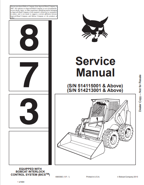 3. Access the BOBCAT 873 Service Manual (6900382) as a PDF. Ensure your equipment runs smoothly with expert maintenance tips and repair guidelines.