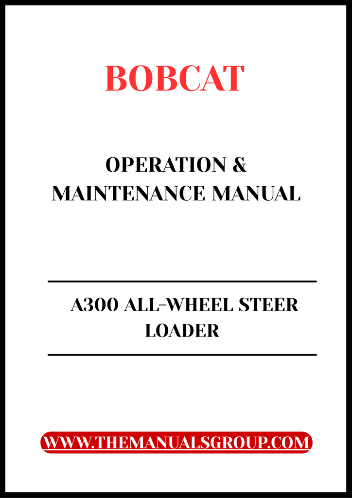 DOWNLOAD COMPLETE OPERATION & MAINTENANCE MANUAL FOR BOBCAT A300 ALL-WHEEL STEER LOADER - PDF FILE