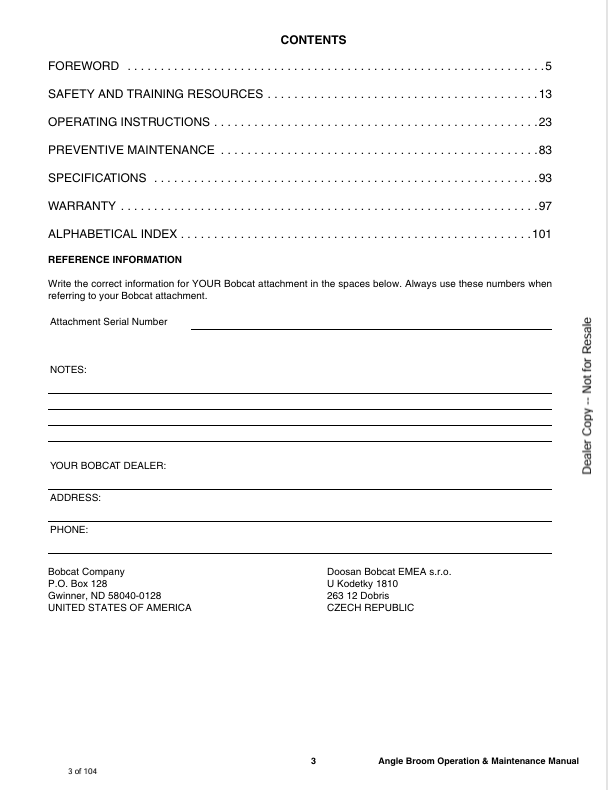 DOWNLOAD COMPLETE OPERATOR MANUAL FOR BOBCAT 52, 64 ANGLE BROOM (7395757) PDF DOWNLOAD