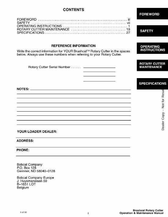 DOWNLOAD COMPLETE OPERATION & MAINTENANCE MANUAL FOR BOBCAT BRUSHCAT ROTARY CUTTER (6900451) PDF DOWNLOAD