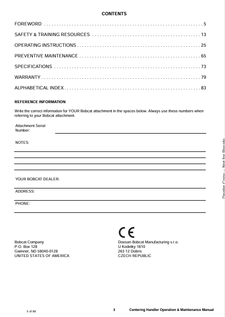 BOBCAT BUD7001, BUD7025 CENTRING HANDLER (6989734ENGB) OPERATION & MAINTENANCE MANUAL PDF FILE