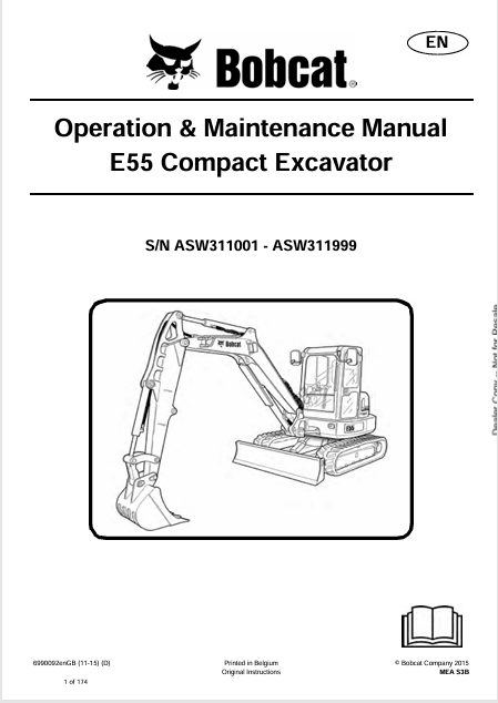 5. Explore the Bobcat E55 Compact Excavator operation and maintenance manual (6990092) in PDF format. Essential for operators seeking to maximize machine efficiency.