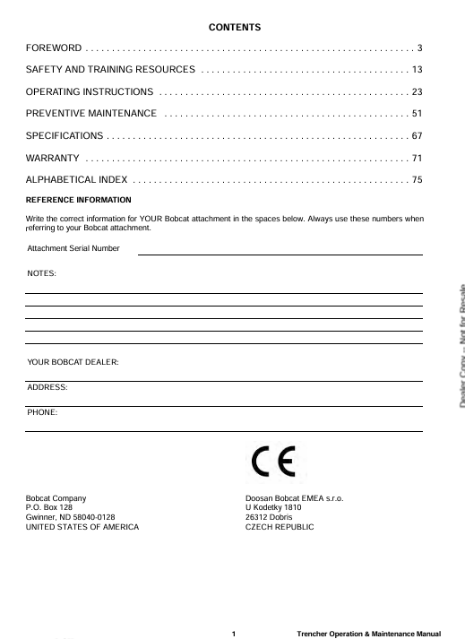 3. Invest in your equipment's future with this invaluable resource. Download the BOBCAT LT405 TRENCHER Operation & Maintenance Manual today and take the first step towards optimal performance and reliability.