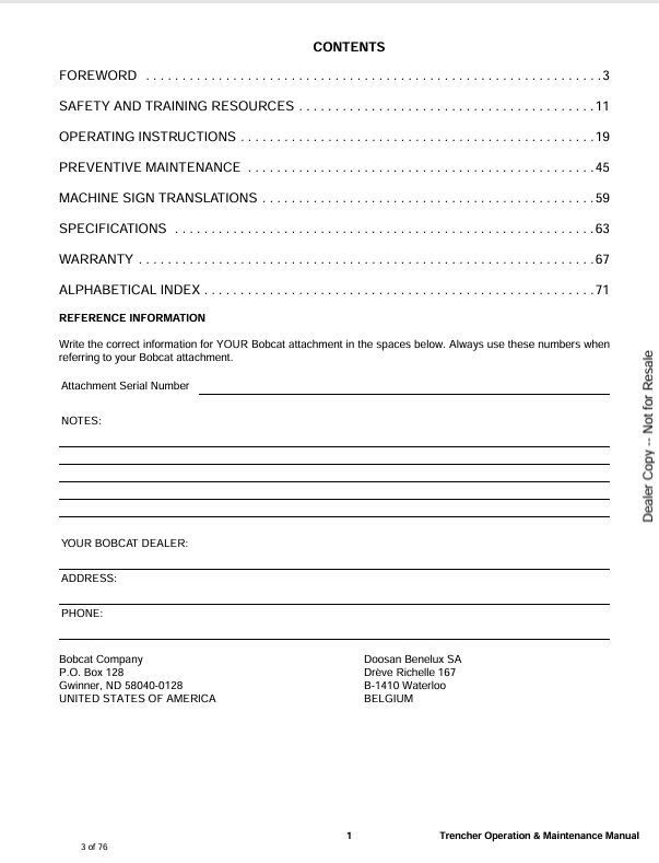 1. Discover the essential BOBCAT LT405 TRENCHER Operation & Maintenance Manual, designed to enhance your equipment's performance and longevity. This comprehensive PDF download provides you with detailed instructions, ensuring you can operate and maintain your trencher with confidence and ease.