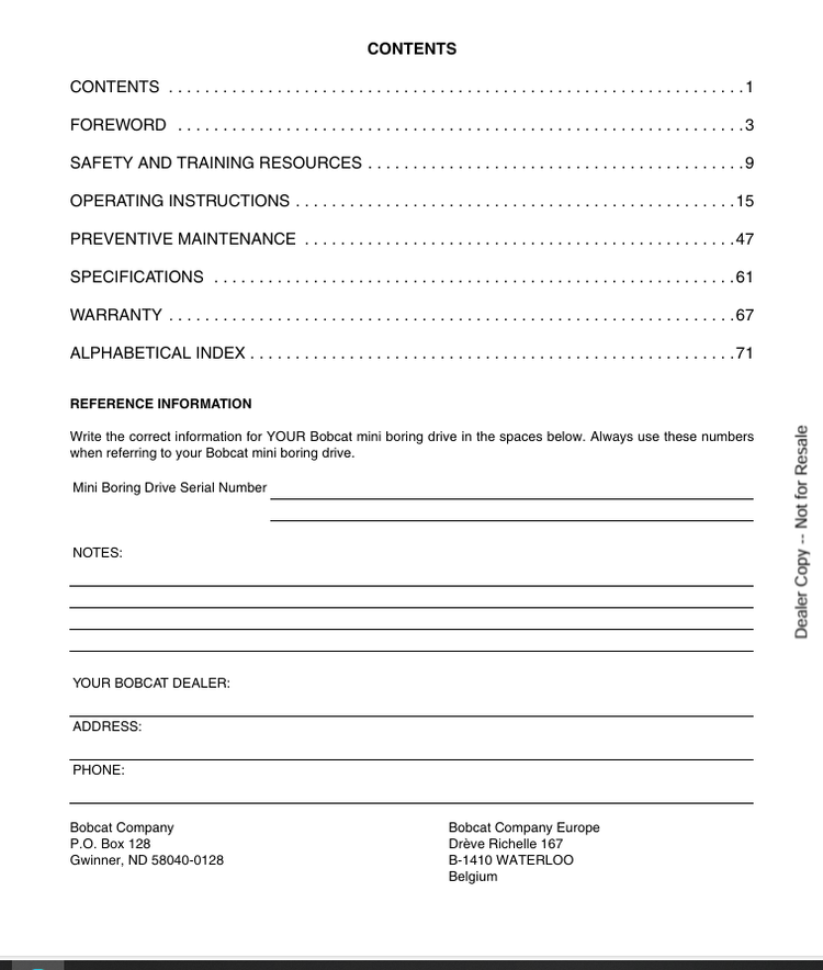 1. Discover the essential BOBCAT MINI BORING DRIVE (6903826ENUS) Operation & Maintenance Manual, a comprehensive PDF guide designed to enhance your equipment's performance and longevity. This manual provides detailed instructions and insights into the operation and maintenance of your mini boring drive, ensuring you get the most out of your investment.
