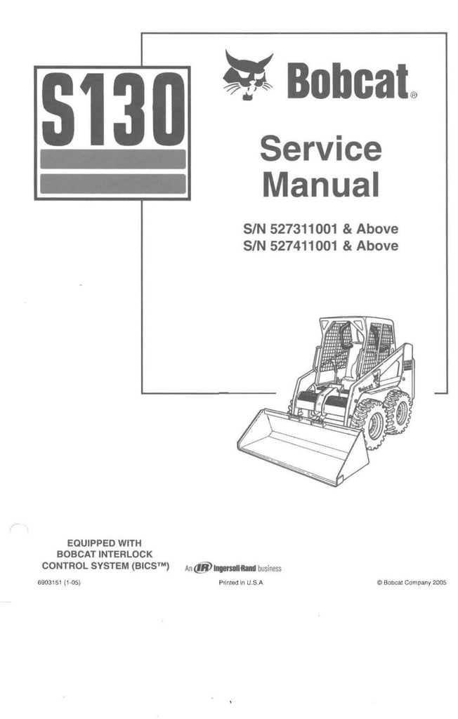 DOWNLOAD COMPLETE SERVICE MANUAL FOR BOBCAT S130, 527311001, 527411001 & UP 6903151 - PDF DOWNLOAD