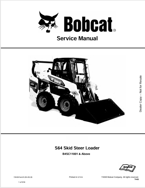 1. Discover the comprehensive service manual for the BOBCAT S64 Skid-Steer Loader (7353047). Download the PDF for expert maintenance and repair guidance.
